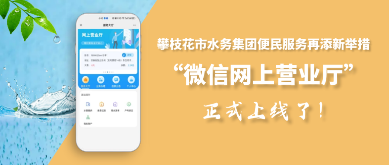 新年伊始,攀枝花市水務(wù)集團(tuán)便民服務(wù)再添新舉措,“微信營(yíng)業(yè)廳”(以下簡(jiǎn)稱(chēng)“微網(wǎng)廳”)正式開(kāi)通運(yùn)行,用戶(hù)只需關(guān)注二維碼,動(dòng)動(dòng)手指就可以在“微信營(yíng)業(yè)廳”辦理水費(fèi)繳納、用水報(bào)裝、更名過(guò)戶(hù)、信息查詢(xún)等各項(xiàng)用水業(yè)務(wù),為您提供更加專(zhuān)業(yè)、高效的優(yōu)質(zhì)服務(wù),實(shí)現(xiàn)辦事“免跑腿”、溝通“零距離”。下面,跟隨小編一起去看看“微網(wǎng)廳”的操作流程吧!
